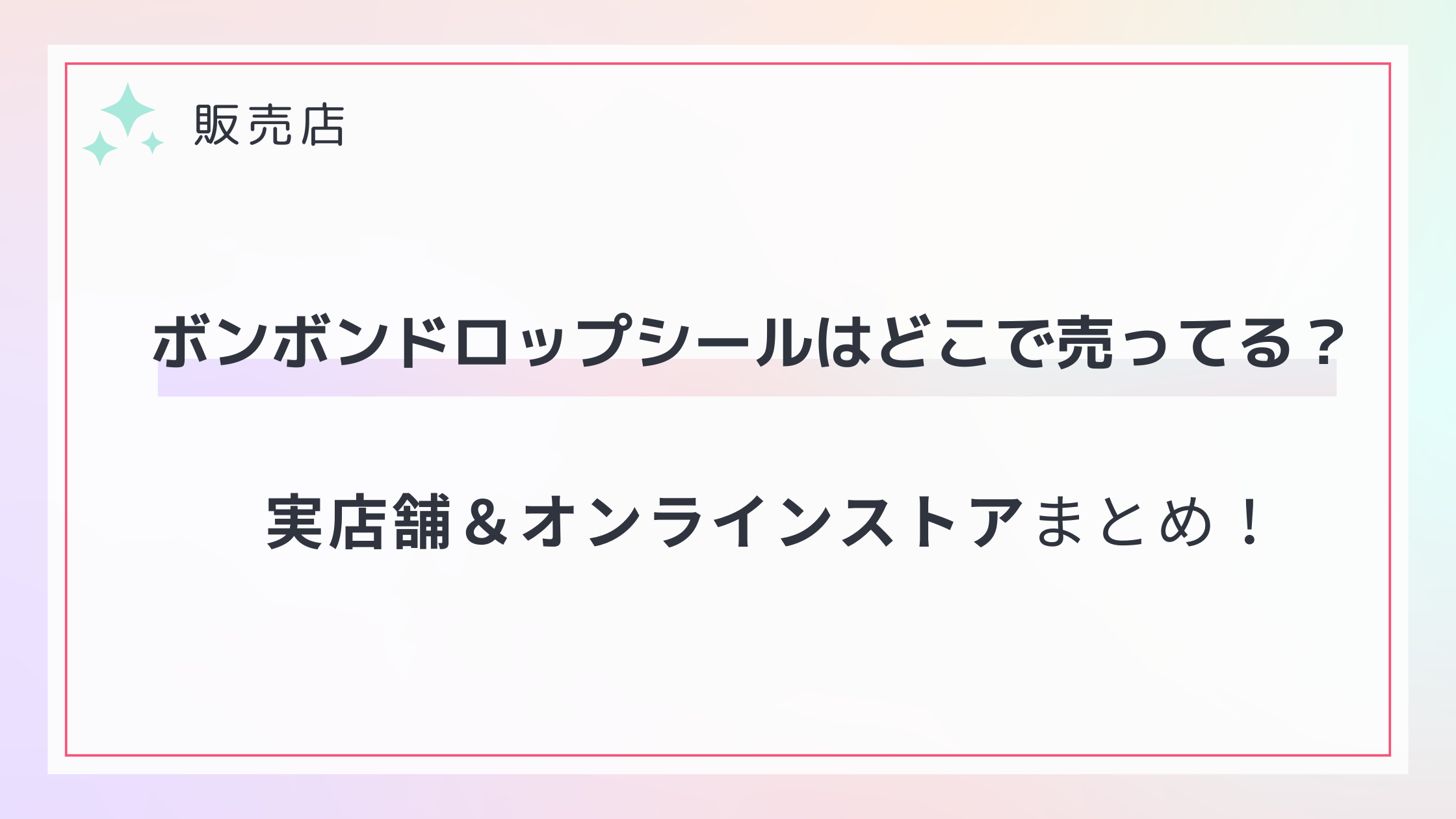 以下は「ボンボンドロップシール」が購入できる主な販売店の一覧表です。店舗ジャンルごとに簡単な特徴をまとめています。