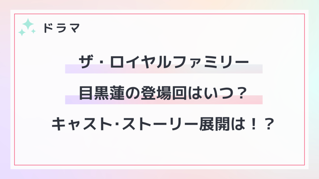 ドラマ「ザ・ロイヤルファミリー」目黒蓮の登場回はいつ?キャスト・ストーリー展開は!?